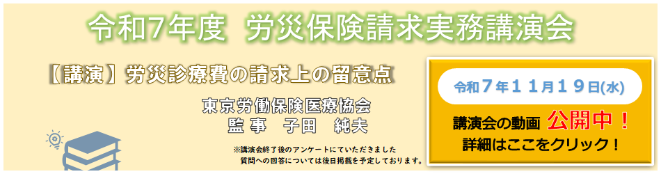 当会では、労災保険指定医療機関の労災診療の質の向上並びに保険制度の普及啓発を目的として開催しております。今年度は、令和7年11月19日(水)午後2時より東京都医師会2階講堂にて「労災保険の診療及び審査について」と「労災診 ...